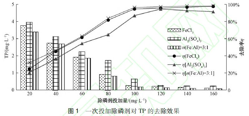 一次投加:在混凝開(kāi)始之前按照20、40、60、80、100、120、140、160mg/L的投加量一次性投加除磷劑。