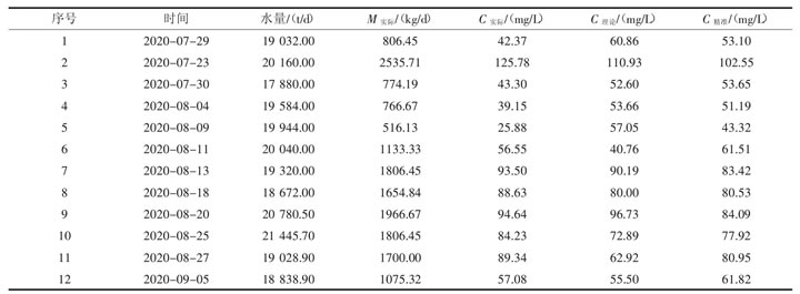 表2 湛江市某城區(qū)污水廠PFS理論及實(shí)際投加濃度值