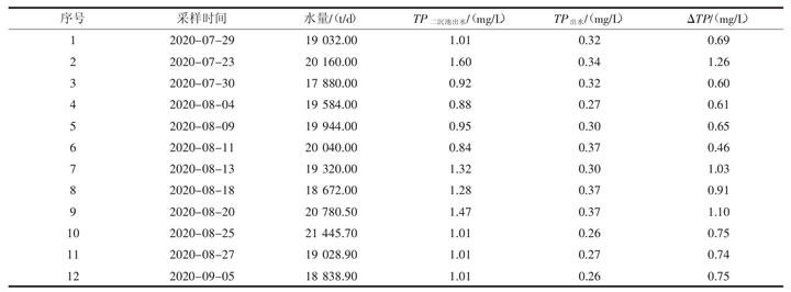 表1 湛江市某城區(qū)污水廠TP實(shí)測(cè)值